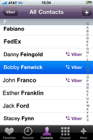 Những ai trong danh sách liên lạc của bạn có sử dụng Viber sẽ có thêm chữ Viber màu tím kế bên, bạn cũng có thể gửi tin nhắn giới thiệu Viber cho bạn bè và người thân. Đối với những người đã cài đặt Viber, bạn đã có thể gọi điện cho họ miễn phí bất cứ lúc nào và bất cứ đâu, ko cần biết là trong nước hay quốc tế. Nếu người bạn muốn gọi ko sử dụng Viber thì chương trình sẽ tự chuyển về chế độ gọi thông thường.